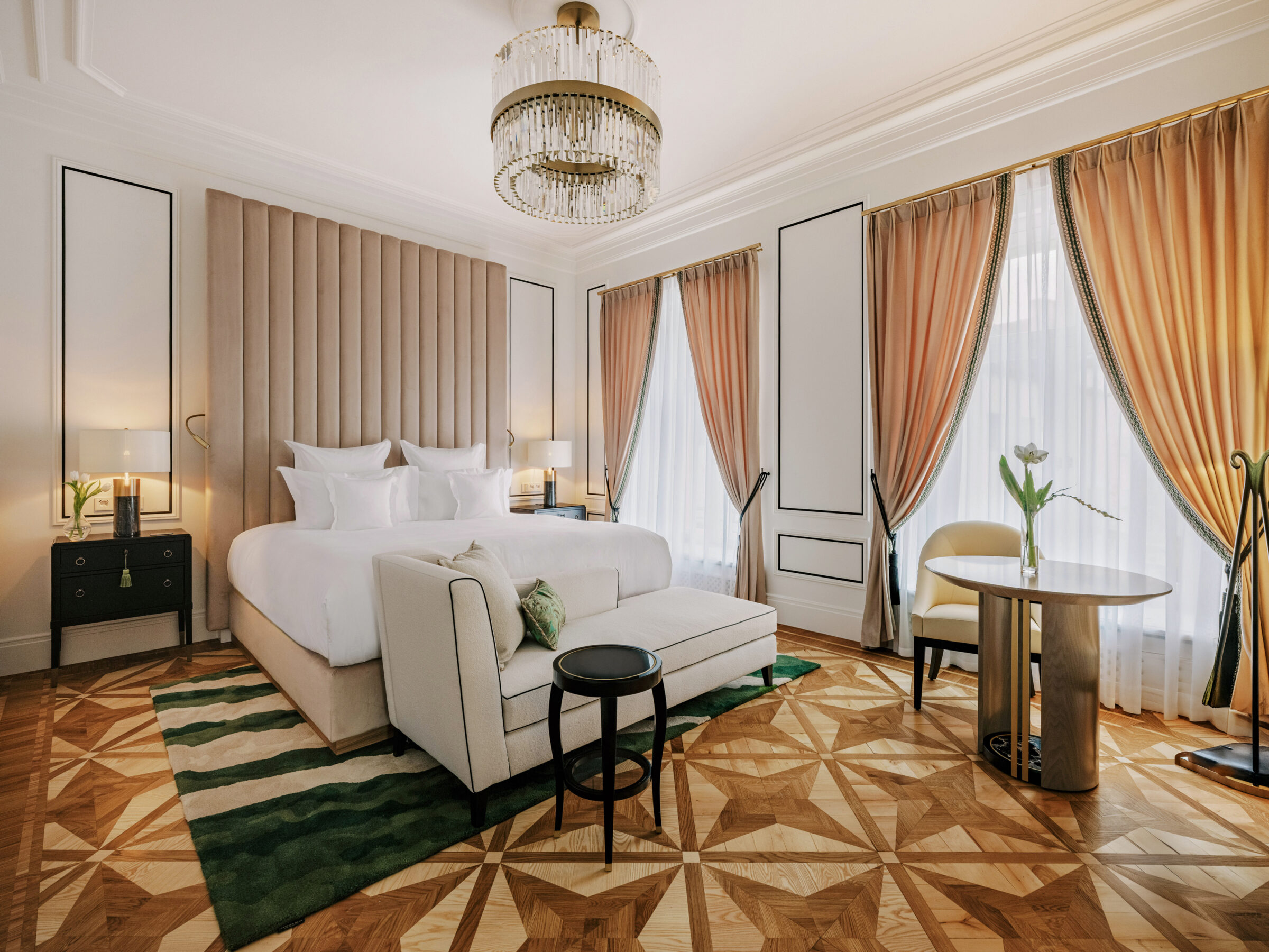 Marble, gold accents and sleek design create an ambiance of contemporary luxury and serenity with plush fabrics, handmade mattresses and extensive pillow menus to provide the ultimate rest and relaxation.