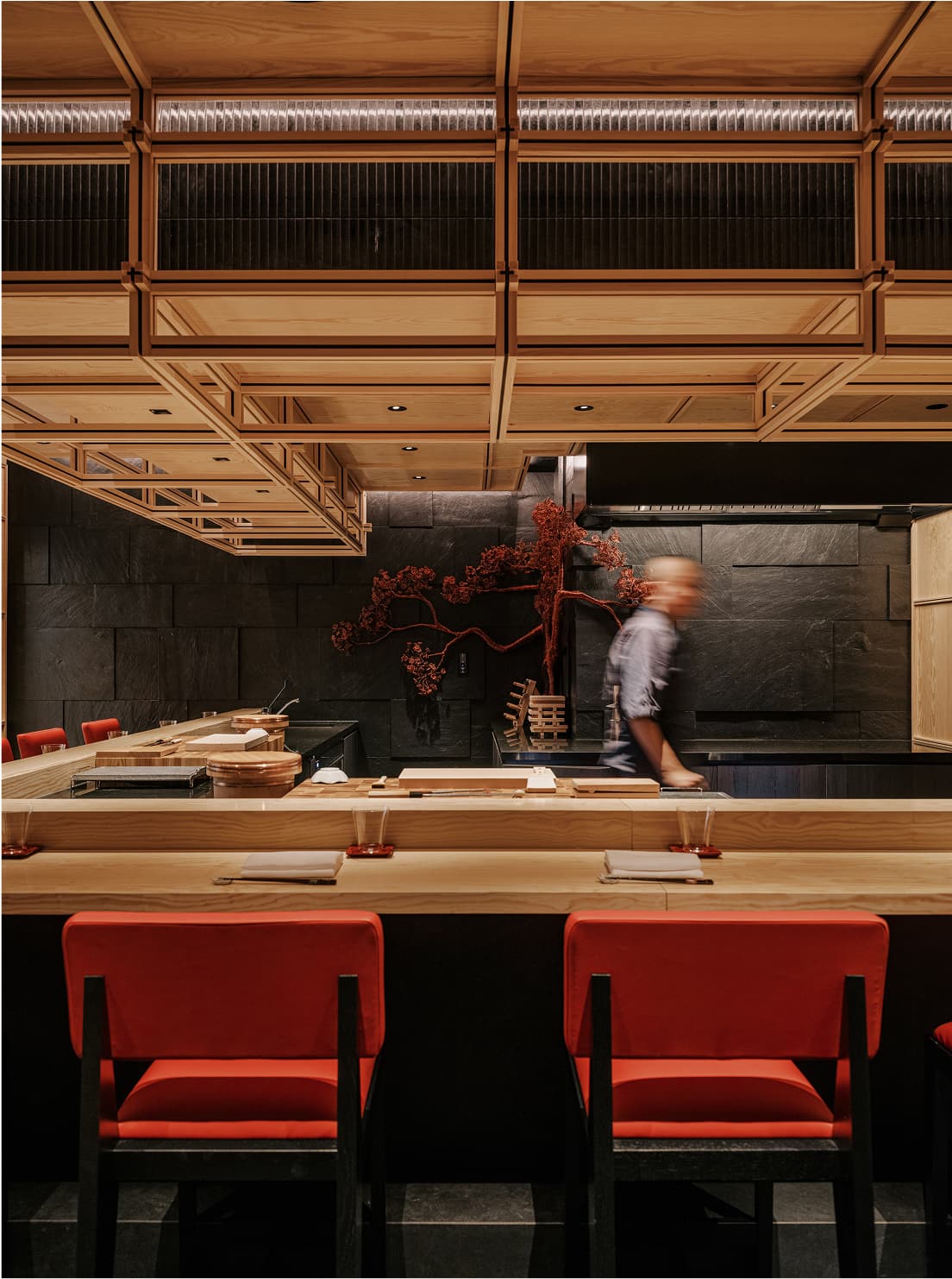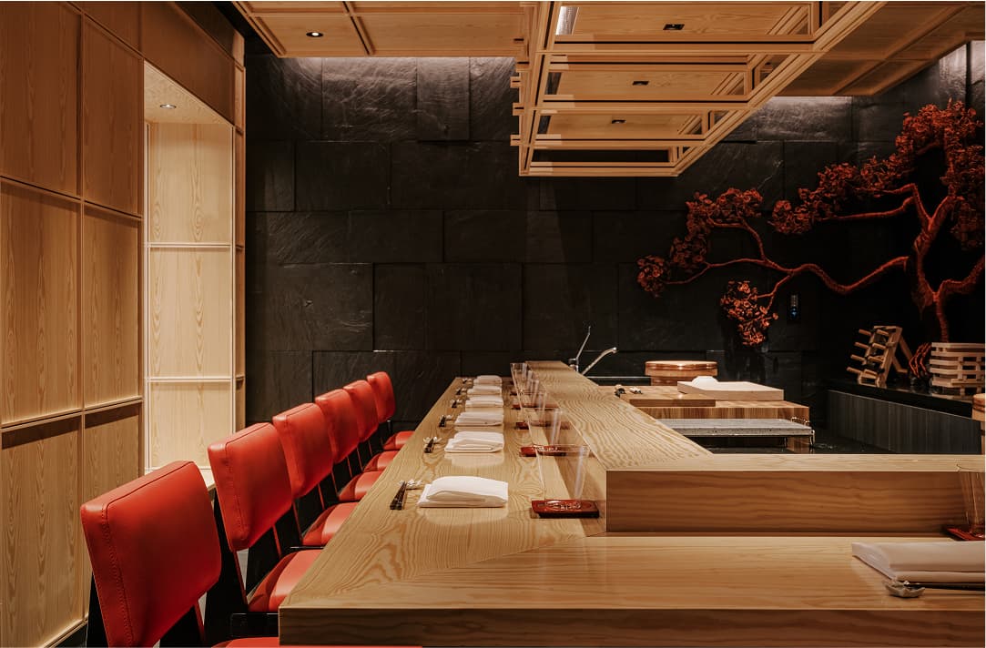 Here you will experience the memorable art of omotenashi, an ancient form of hospitality where skillful chefs prepare each course before your eyes. Absorb the quiet harmony of nature’s bounty and culinary artistry,which respects tradition whilst pushing the boundaries of creativity.